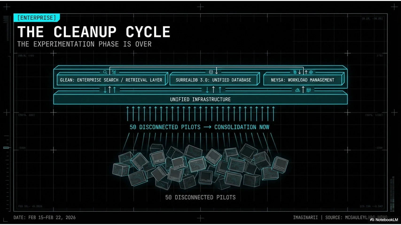 Eleven percent sounds modest. It isn't. At 85% accuracy, an AI coding assistant creates more work than it saves — you're hunting subtle bugs in code that looked right. At 96%, you review and ship. That gap is the entire difference between a tool you trust and one you delete. The broader enterprise picture is consolidation and cleanup. Companies ran 50 disconnected AI pilots over the past two years. None of them talk to each other. The capital is now flowing toward infrastructure companies — Glean for enterprise search, SurrealDB 3.0 consolidating vector, graph, and relational databases into one platform, Nisa for workload management. The experimentation phase is over. Getting the plumbing right is where the policy battles are happening next.