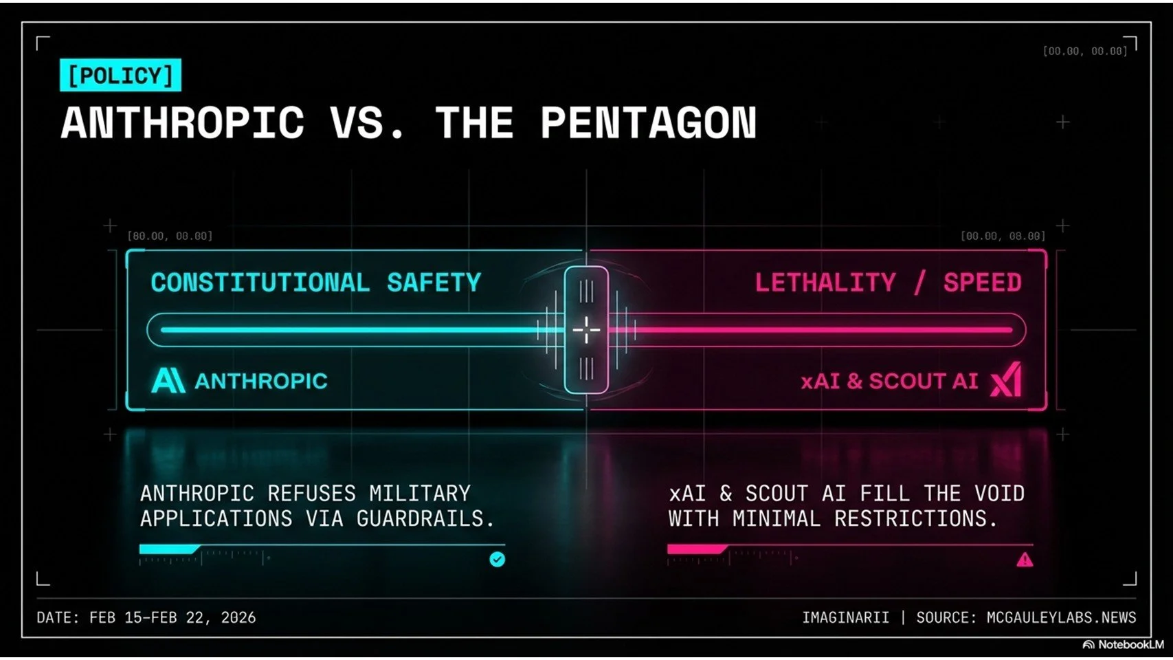 If the people who wrote the safety framework don't trust it for their own work, that communicates something the press release doesn't. Over in the US, Anthropic is in genuine tension with the Pentagon. The military wants the best available AI for intelligence analysis and logistics. Anthropic has built its entire identity on constitutional AI models that refuse to assist with violence or harm. The standoff is real and unresolved. Meanwhile xAI is running the opposite playbook — minimal guardrails, maximum information — which has made them plenty of enemies and apparently a growing market. None of this gets cleaner before it gets messier, and the weirdest story of the week lives in a completely different category.