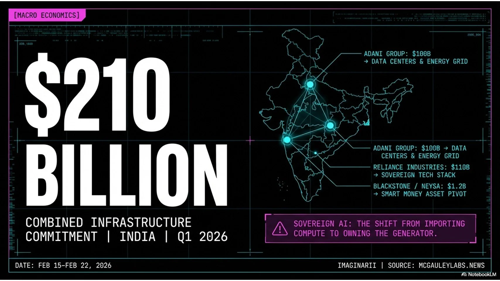 Two hundred and ten billion dollars. That's the combined number from just two Indian companies this week — Adani Group pledging $100 billion for AI data centers and energy infrastructure, Reliance Industries committing $110 billion to their own tech ambitions. India is targeting $200 billion in total AI infrastructure investment by 2028, and based on this week's announcements, they're ahead of schedule.