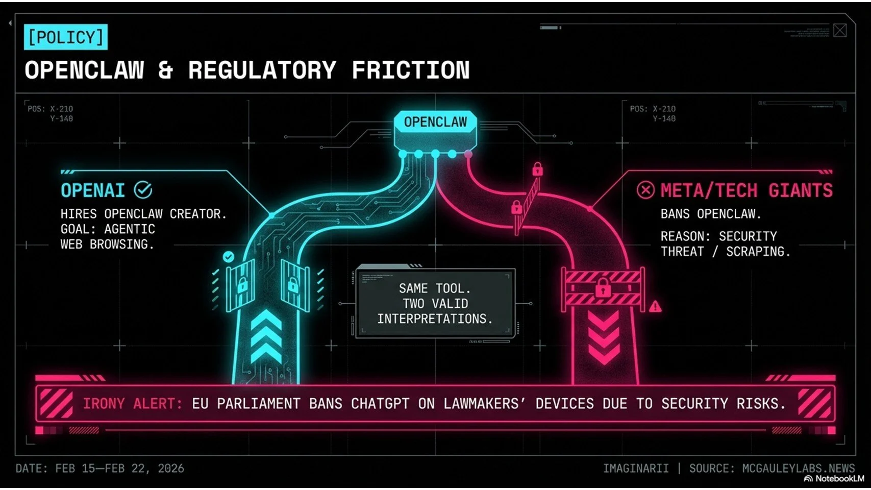 OpenAI hired Peter Steinberger this week, the main creator of OpenClaw — an open-source tool that gives AI agents real browser capabilities: fill forms, click buttons, navigate web interfaces. OpenAI wants autonomous agents that can actually do things on the internet. At the exact same moment, Meta and several other major platforms banned OpenClaw from accessing their systems.