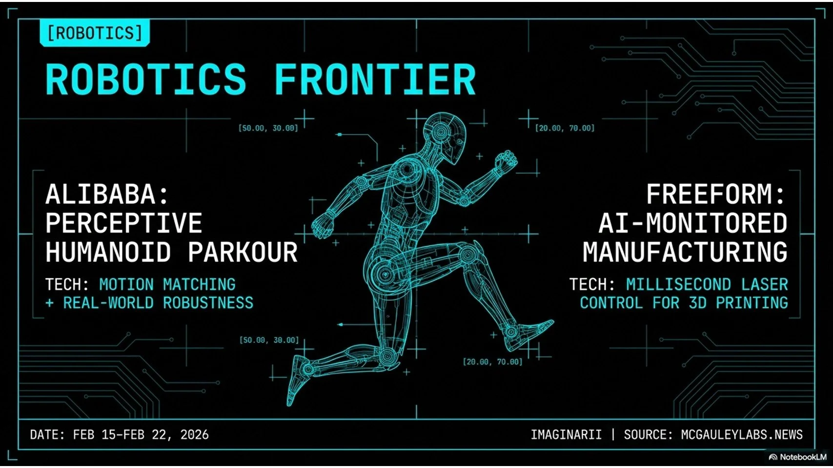 Alibaba published research on humanoid robots executing parkour this week — backflips, obstacle vaulting, dynamic recovery. The obvious question is why a robot needs parkour. The actual answer is that a robot capable of sticking a backflip has mastered balance, joint coordination, and real-time environmental adaptation at a level that translates directly to warehouses, hospitals, and disaster response sites. The parkour is the test case. The applications are everything else. Freeform's $67 million laser manufacturing platform is AI closing the loop from the other direction — not building digital infrastructure, but using AI to build physical hardware with molecular precision during the manufacturing process itself. The physical and digital layers of this industry are collapsing into each other faster than most people have processed.